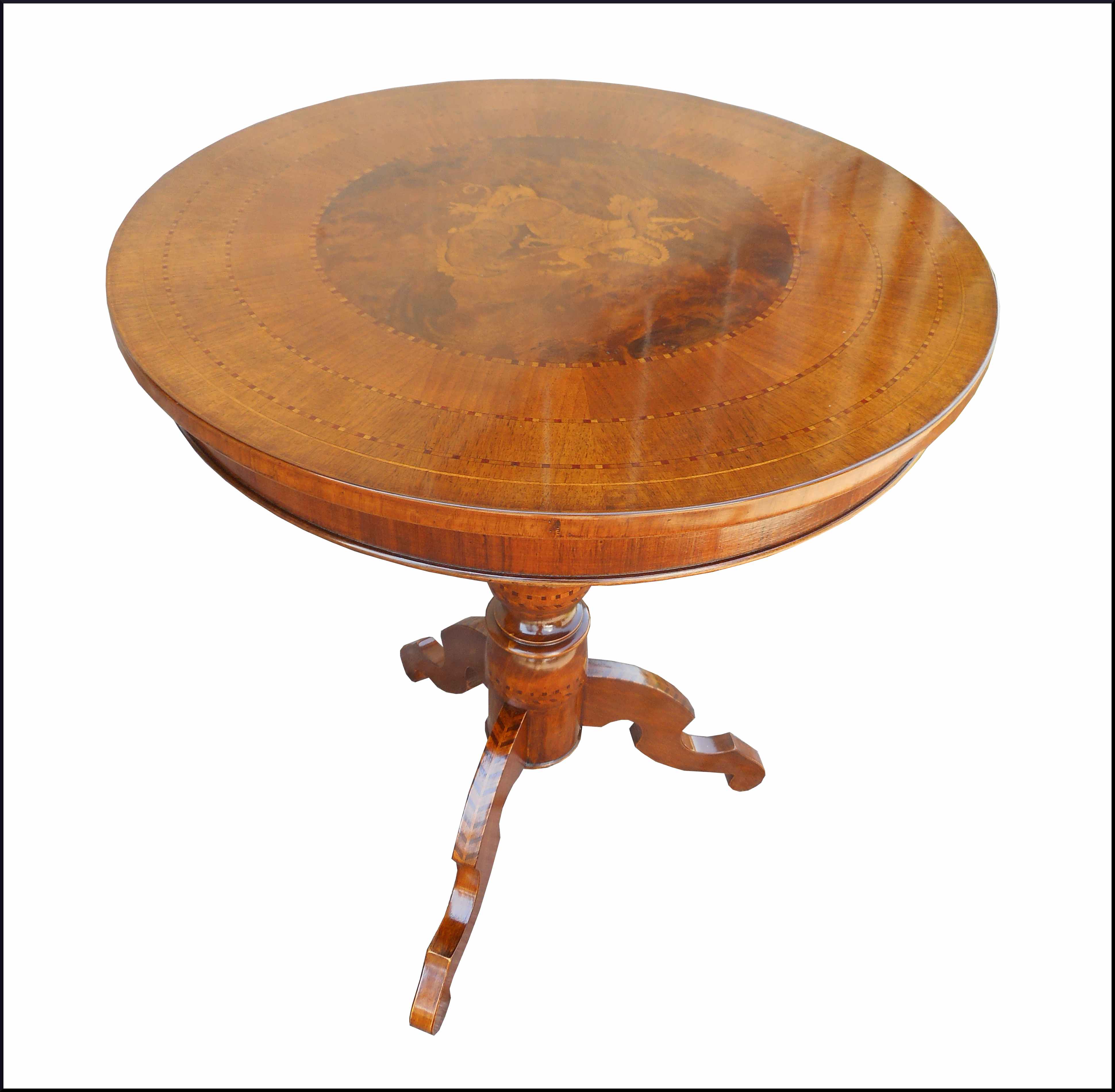 Tavolo Rotondo In Noce Massello Con Intarsio Arte Brotto