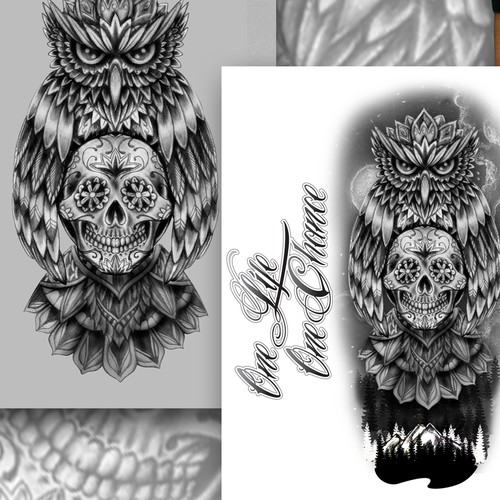 Traditional american style/comic tattoo forearm (black & grey) - dark owl... | Tattoo contest | 99designs