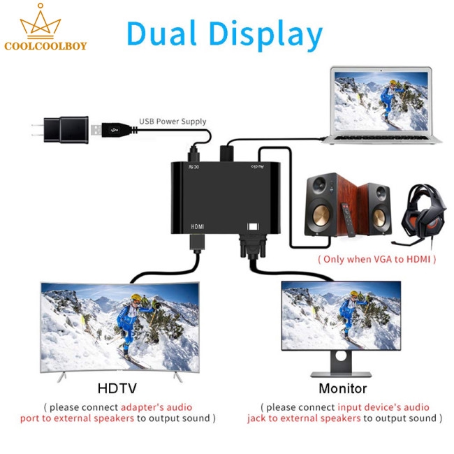 2 In 1 Vga To Vga Hdmi Splitter With 3 5mm Audio Converter Support Dual Display For Pc Projector Hdtv Multi Port Vga Adapter Shopee Philippines