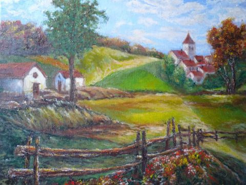 Oeuvre d art unique Hameau fleuri de l'artiste Liisa Corbière, de style Paysage