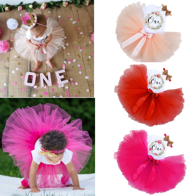 Wfrv Baby Girl Birthday Outfits 1st First Birthday Party Clothing 1 Year Christening Dress 3pcs Suit Shopee Singapore
