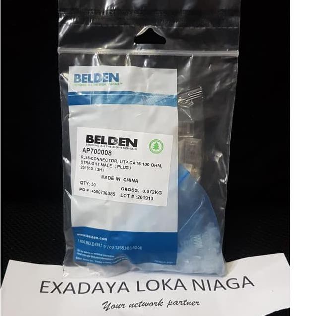 Konektor Rj45 Cat6 Utp Belden Original Isi 50pcs Shopee Indonesia